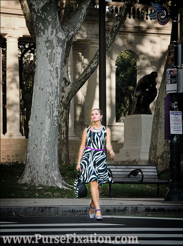 So, I am carrying my personal DVF patchwork piece of art around Philadelphia streets, wearing Dressbarn Zebra Print dress (similar, similar), JCPenny belt (similar, similar) and G by Guess Hallow White Multi Satin heels.
